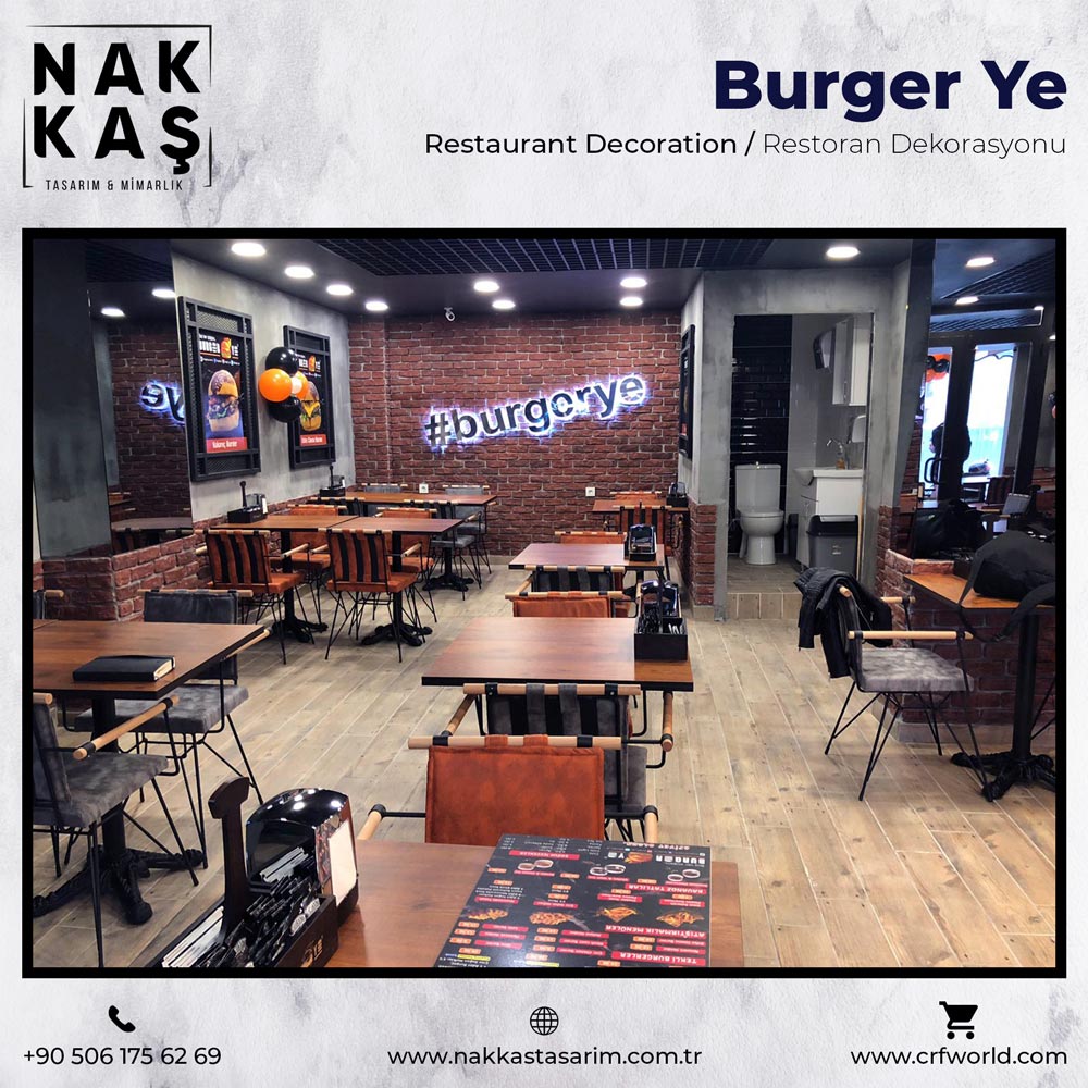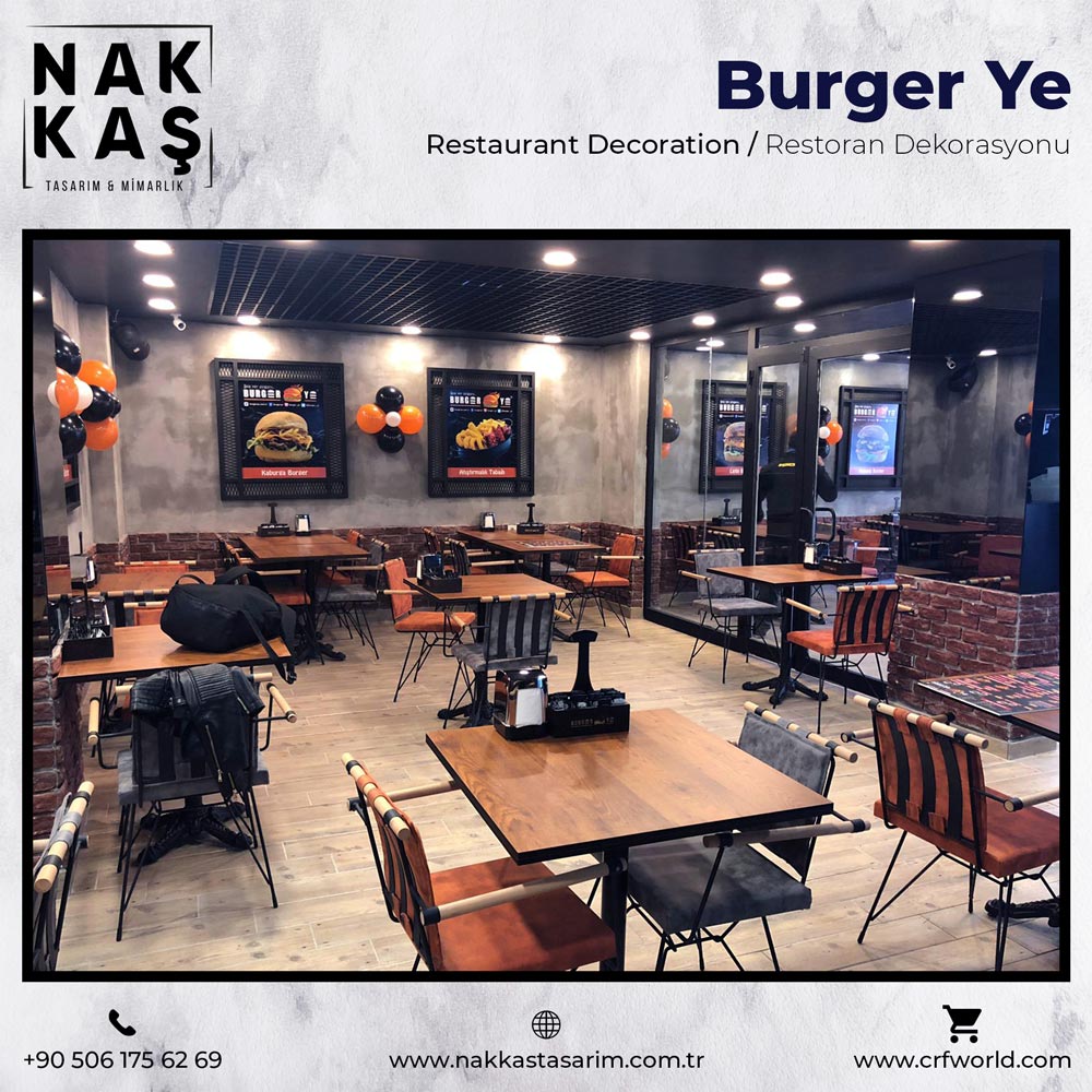 Burger YeOmer2023-05-23T23:07:34+03:00 You can view the images of the restaurant decoration made by Nakkaş Tasarım of Burger Ye company through the gallery below.