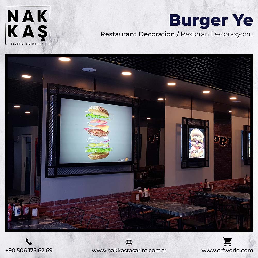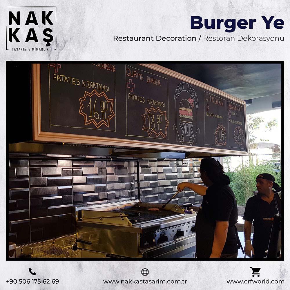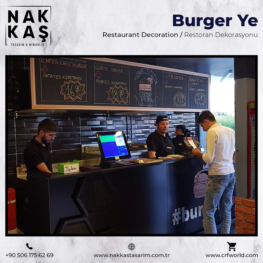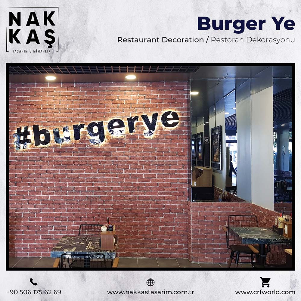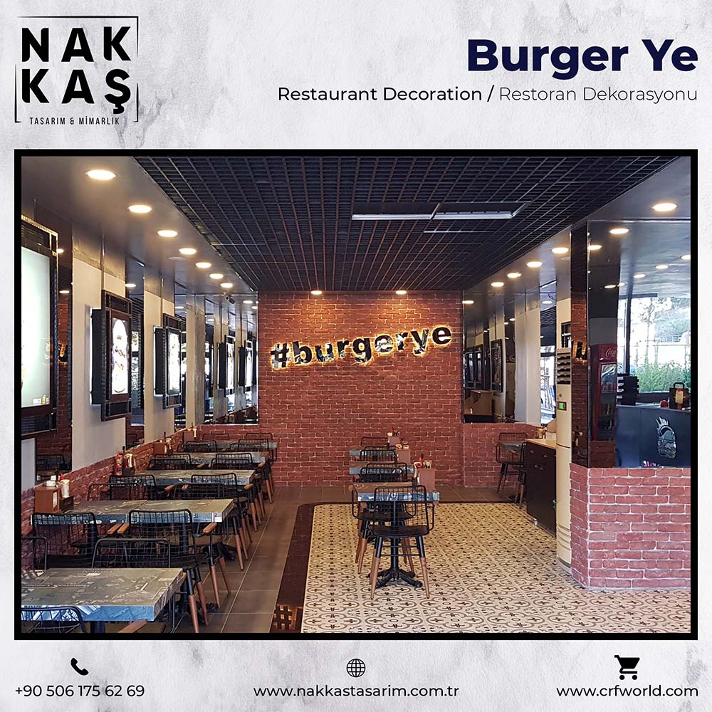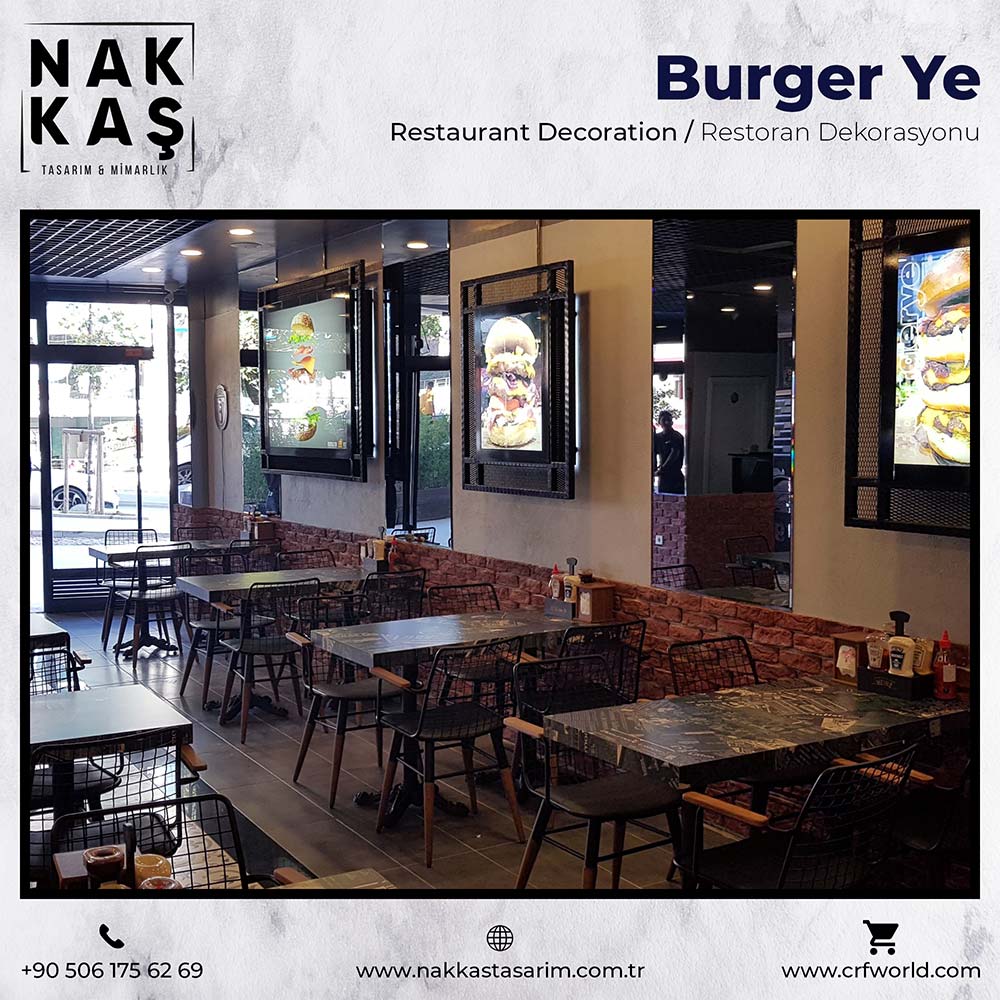 Burger YeOmer2023-05-23T21:42:02+03:00 You can view the images of the restaurant decoration project of Burger Ye company made by Nakkaş Design through the gallery below.
