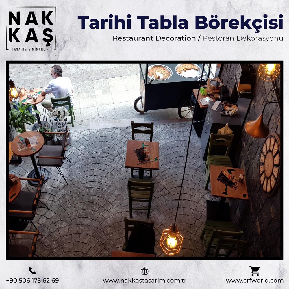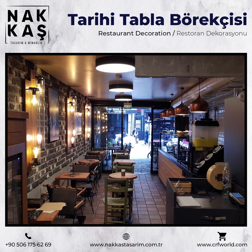 Tarihi Tabla BörekçisiOmer2023-05-23T22:20:10+03:00 You can view the images of the restaurant decoration made by Nakkaş Tasarım of the Tarihi Tabla Börekçisi company through the gallery below.