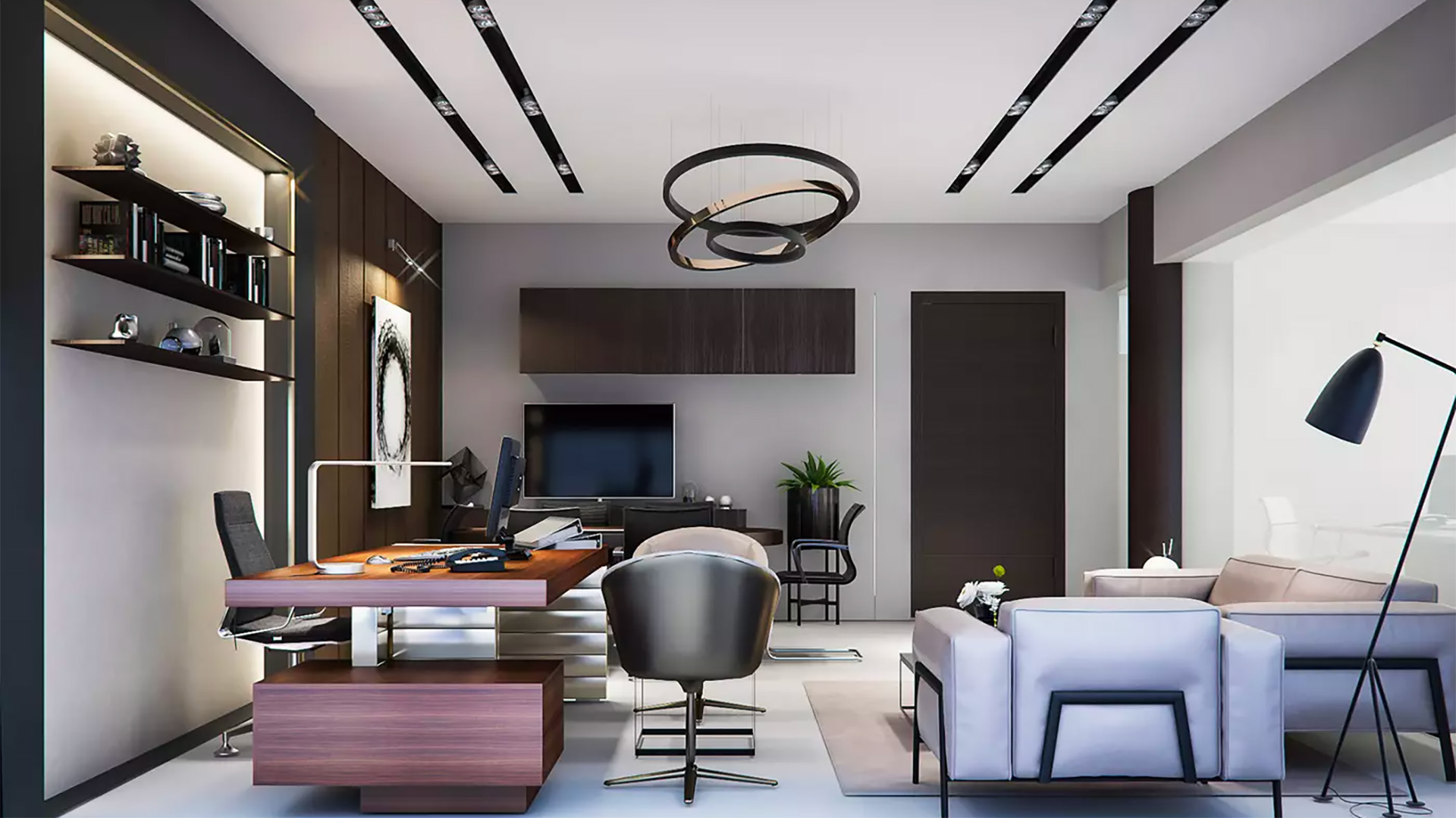 Lüks ofislerde toplantı odaları ve karşılama alanları, ziyaretçilere unutulmaz bir deneyim sunma fırsatı verir. Şık toplantı masaları ve özel tasarım koltuklar, ziyaretçilere profesyonel ve prestijli bir karşılama sunar. Toplantı odalarında özenle seçilmiş aydınlatma ve dekoratif detaylar, iş dünyasında güvenilirlik ve kalite mesajı verir.